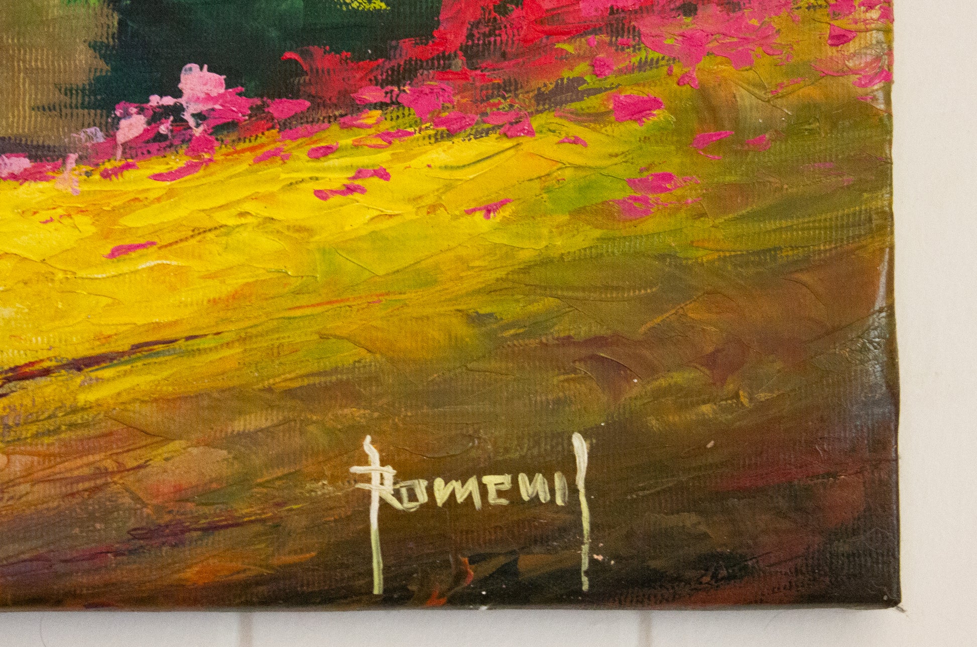 The artist uses rich impasto brushwork, allowing the texture of the paint to stand proudly on the surface, adding depth to the piece.